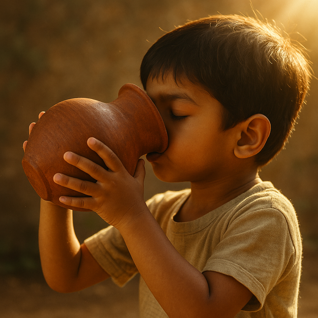 Earthen water carries gentle Pranic energy, supporting hydration while aligning with natural body rhythms. Its porous structure allows cooling, enhancing vitality and calmness.