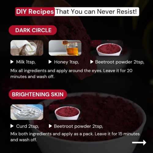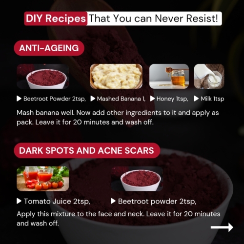 Beetroot contains Vitamin C that prevents skin pigmentation, thereby providing a fairer complexion.
