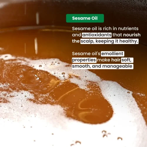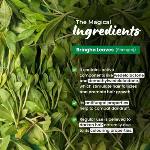 Bringha Leaves- Handpicked fresh Bringha leaf is used in the making of this oil to give enhanced hair growth. Lush and thick hair growth is what Bringha leaf can give you. It can control scalp itchiness and improve scalp and hair health.