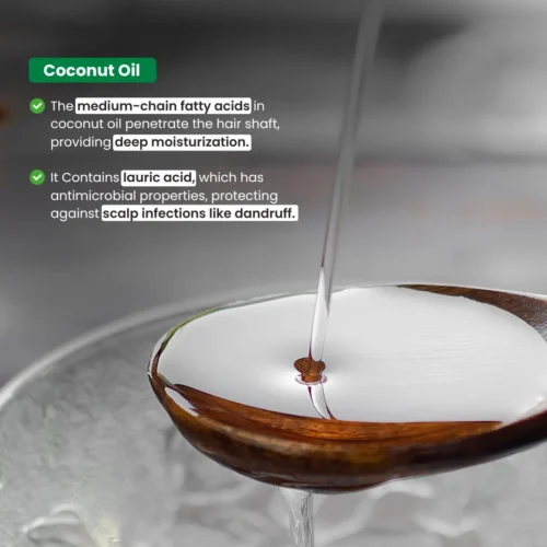 Virgin coconut oil- Pure virgin coconut oil gives you strong hair. It prevents dandruff and lice, calms the scalp, and stimulates hair growth. It reduces frizziness and gives smooth and shining hair.