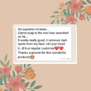 Hello I started using ur carrot soap and red wine gel It’s really aswm…! can see the difference in my skin tone thank u so much Also rose lip scrub and balm it’s really very gud it make my lips soft and lip colour also getting better ‘Il be ur permanent customer now Stay blessed