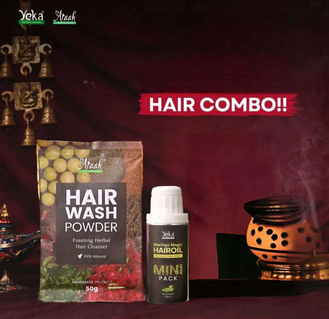 When hair problems hit us, we feel totally stressed and this stress does nothing good to the hair problems. In fact, it worsens the hair problems. When did we say hair problem do you wonder if your hair problem is included? Yes! We have a perfect solution to every hair problem ever. Hair fall, alopecia, dull hair, frizzy hair, dry hair, thinning hair, premature greying itchy scalp, dandruff, lice whatever it might be you just need to use these three products together – Yeka Moringa hair oil, Araah Skin Miracle Hair Wash Powder. And voila!! You will witness your hair transforming into lustrous, voluminous, strong, and healthy hair and you will have a healthy scalp too. This is because these products are made with ayurvedic formulation by picking the best of herbs, combining them in the right way to get your hair the perfect health it needs and it is trusted by 30k+ customers. And what’s more this product is unisex, also cools and relaxes your body keeping you stress-free! It can also be used for male baldness caused by helmet and travel; female baldness caused by post-delivery. This is the ultimate triplet you need for enjoying great hair days every day!!