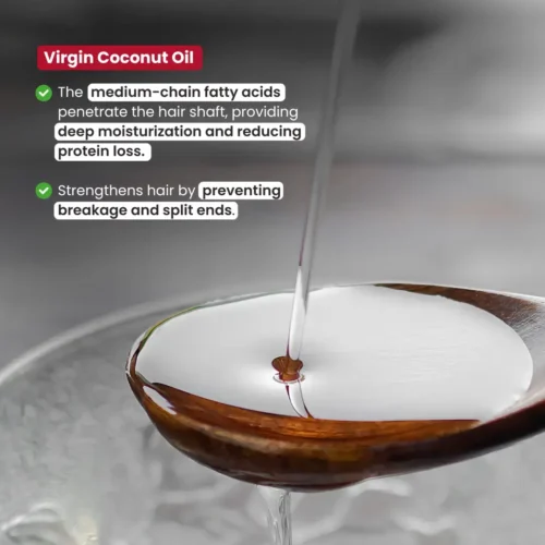 Virgin coconut oil- Pure virgin coconut oil gives you strong hair. It prevents dandruff and lice, calms the scalp, and stimulates hair growth. It reduces frizziness and gives smooth and shining hair.