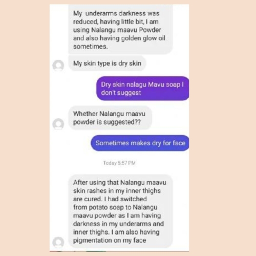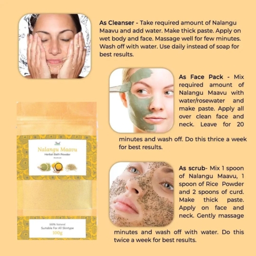 As a natural skin cleanser, nalangu maavu can be used daily. There is no need to use soap after nalangu maavu.