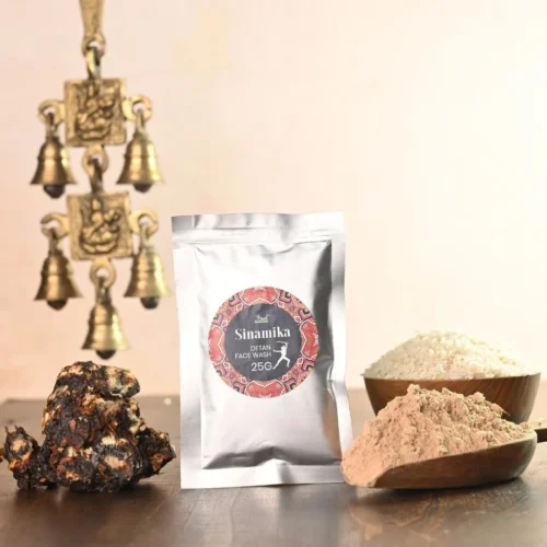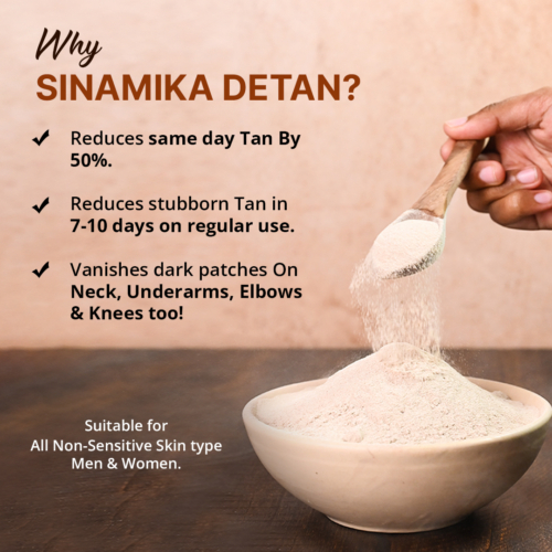 Get an instantly bright look with our Sinamika Detan Facewash. Made with 100% natural, toxin & chemical-free exfoliating agents like rice, tamarind, and fruit AHA, this face wash is the best to remove tan and uneven skin. Bentonite clay removes excess dirt and impurities deep from the skin. This face wash powder is the best one to remove darkness around the neck.