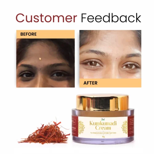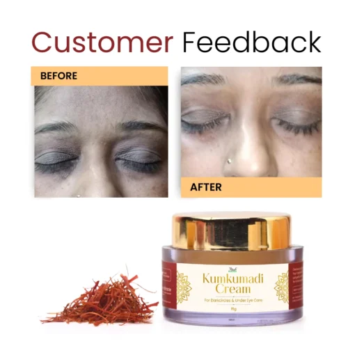 Your Kumkumadhi Eye Cream is the best. It’s started working out as my dark circles, fine lines, and puffiness been reduced on regular use . It’s been four week now. Thank you for such beautiful cream .