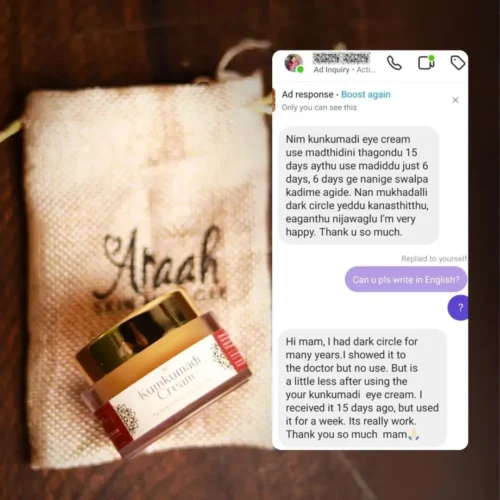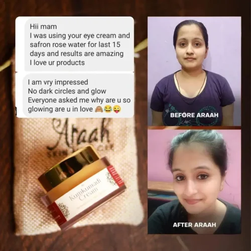 Araah’s kumkumadi eye cream has made my dark circles vanish.. I’ll suggest to my friends and family