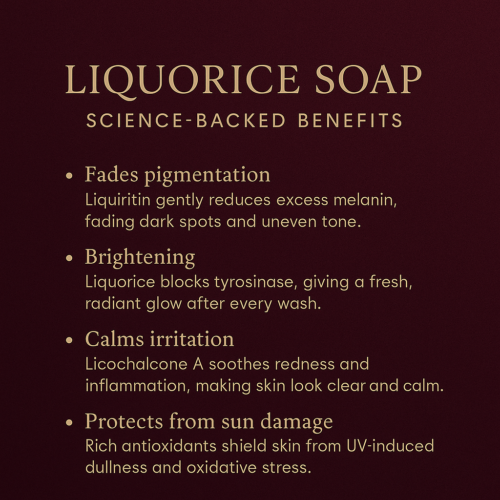 Liquorice soap hands down the best soap for pigmentation and uneven skin tone. This s my second soap. Seriously the best for dark spots Big fan of your liquorice soap.