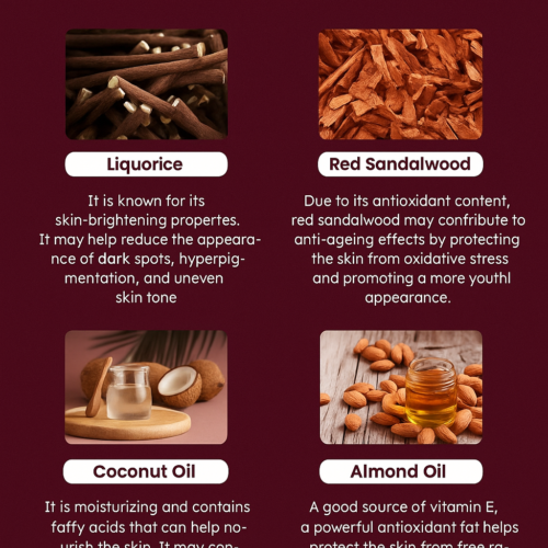 The combination of liquorice and sandalwood works best to fade away pigmentation, dark spots and promote even skin tone.