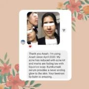 Thank you Araah. I’m using Araah since April 2020. My acne has reduced with acne kit and marks are fading too with liquorice soap. Kumkumadi serum provides a never ending glow to the skin. Your beetroot lip balm is amazing.