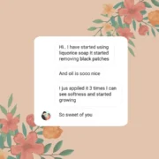 i am usng ur liquorice soap for 2weeks.my skin is getting even nd brighter..i could c changes in my face…am happiee using ur products…
