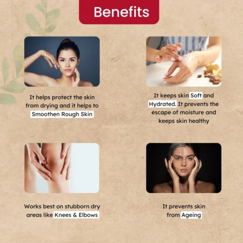 - It keeps skin soft and hydrated. It prevents the escape of moisture and keeps skin healthy.