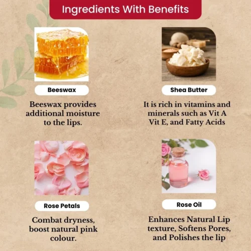 Hi, your rose extract in this lip balm gives my lips a smooth and reduction in lip darkness Plus, it’s super moisturizing and long-lasting. Thank you team