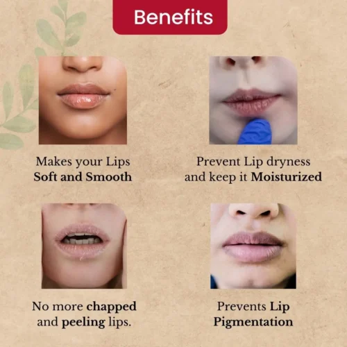Beeswax forms a protective barrier on the lips, sealing in moisture and preventing dryness. It also has antibacterial and anti-inflammatory properties, making it beneficial for soothing chapped lips.