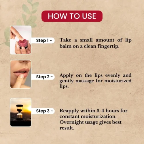 Rose lipbalm I normally have to apply lip balm every cOuple of hrs but I haven’t applied the rose lip balm after first usage,adequate moisture to lips even after 6 hrs + and it smells heavenly