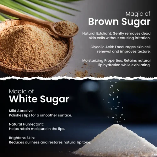 Brown Sugar – It is a gentle scrub and a natural humectant; thus, it is suitable for exfoliation and preserving moisture