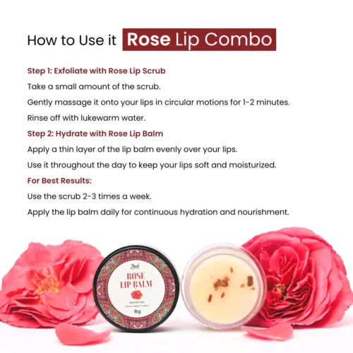 The combination of the rose lip scrub and rose lip balm is amazing! The scrub gently removes and the lip balm keeps my lips feeling very smooth. This has made such a difference in my lip care routine. Its been 1 month now 🙏😊😊