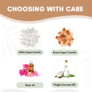 Unlike the other brands that use the Rose powder from the market, we grate Real Rose and use its Extract. This extract is then infused with Organic Virgin Coconut Oil, and brown and white sugar crystals to make it the best-in-class scrub.