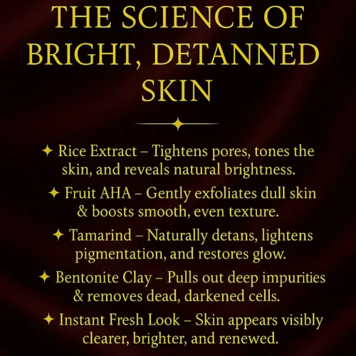 Rice flour and herbal powders refine texture, remove dull dead cells, and reveal smooth, polished, glowing skin — without any harsh scrubs or microbeads.