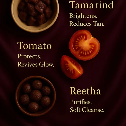 Rice flour and Reetha work together to refine texture, smooth roughness and enhance brightness. They leave the skin feeling soft, polished and smooth to the touch — like a natural glow finish after every wash.