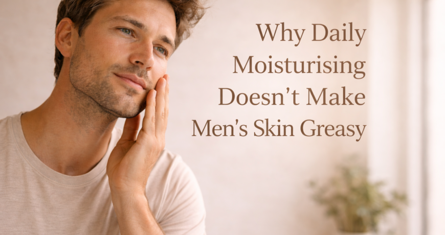 This article explains why moisturising daily does not make men’s skin greasy, how oil and hydration are different, and how the right use of moisturiser actually makes skin easier to manage.